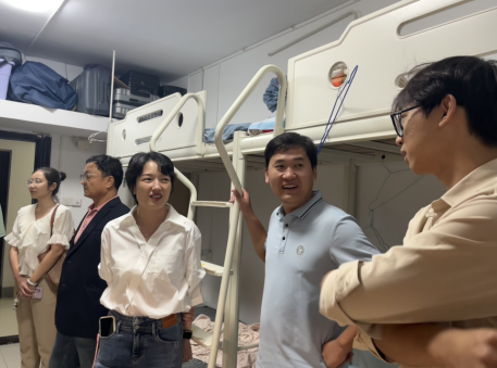 为更好了解2023级研究生新生、2022级阳逻回迁的本科生的生活情况,激励同学们以积极的精神面貌投入校园学习和生活。2138cn太阳集团城结合“入千室、访万生”大走访活动要求,9月13日晚,由2138cn太阳集团城党政领导班子成员、学院辅导员、班主任老师一同开展走访寝室慰问工作。