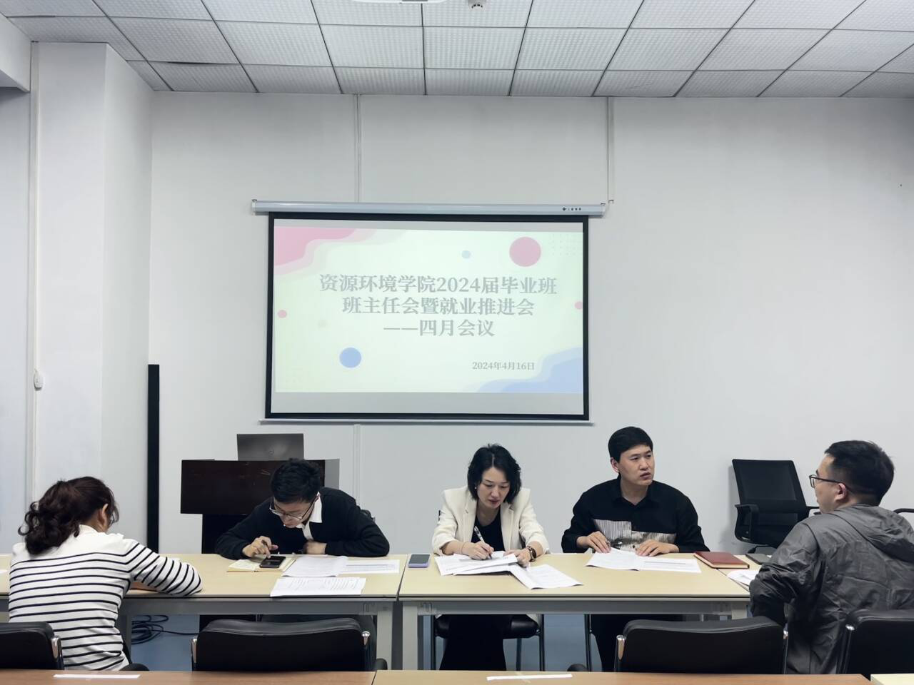4月16日下午,在五楼会议室召开2024届毕业生就业工作推进会。院党委副书记李岚、毕业班班主任、辅导员韩鹏振参加会议。