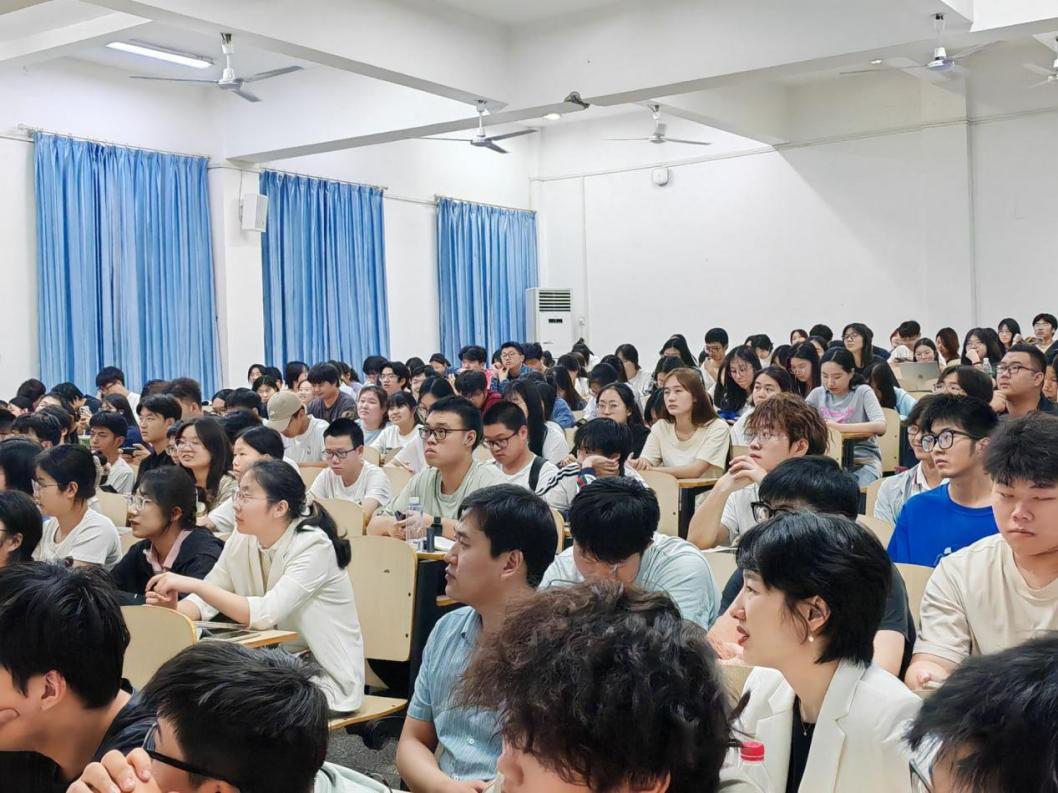 2024年6月5日晚上8点,2138cn太阳集团城党委副书记李岚、团委书记韩鹏振、第21届主席团成员以及优秀学生代表来到阳逻校区,与2023级资环学院本科生共同开展“一站式社区——朋辈引航”活动。此次活动由学生会主席张金铭主持。
