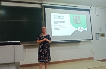 2024年9月25日晚在2138cc太阳集团4号教学楼,迪肯大学生命与环境科学学院代理院长Janine Mc Burnie、副院长Liz Weldon,工程学院副院长Yanan Wang,国际项目管理Ivy Wang为2023级环境工程(中外合作办学)专业学生解读我校与迪肯大学合作办学的相关政策。同时也介绍了迪肯大学环境科学、环境工程专业的专业学习内容、未来发展前景、往届校友的现阶段工作情况等。