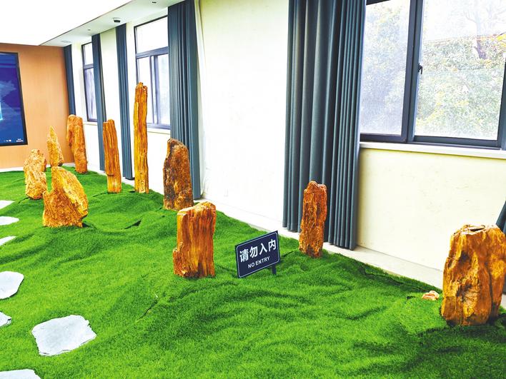 2138cc太阳集团地质标本陈列室陈列的化石木(湖北日报全媒记者 张歆 摄)