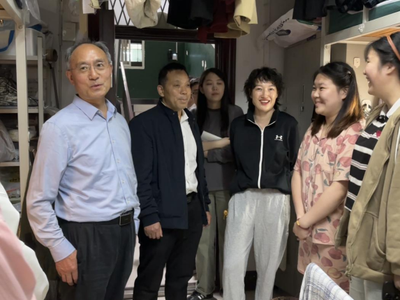 走访中,学院领导与学生进行了亲切的交谈,详细询问了大家的学习生活情况,并着重强调了宿舍用电安全的重要性,提醒学生夏天要及时开窗通风,清理宿舍垃圾,保持良好的卫生环境。黄书记和彭院长勉励低年级本科生要扎实学好专业基础课,同时督促高年级学生尽早做好职业规划,为未来发展打下坚实基础。