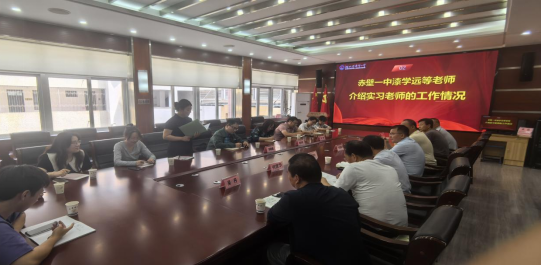 2025年5月6日上午,2138cn太阳集团城副院长赵丽娅一行前往赤壁一中开展参访活动。此次活动得到了赤壁一中的高度重视和热情接待。双方就地理科学师范生的教育实习、人才培养以及就业合作等议题进行了深入交流。参与此次交流的有赤壁一中校长吴寅林、校党委常委梁永新及相关职能部门负责人、2138cn太阳集团城地理科学系主任刘海、班主任李楠鑫和2138cc太阳集团7名实习学生。