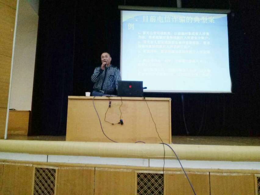标准的军礼是张峰警官站上讲台的第一个动作。张警官主要通过讲述几个电信诈骗,生活诈骗的例子,来告诫学生们要小心谨慎对待“天上的馅饼”。