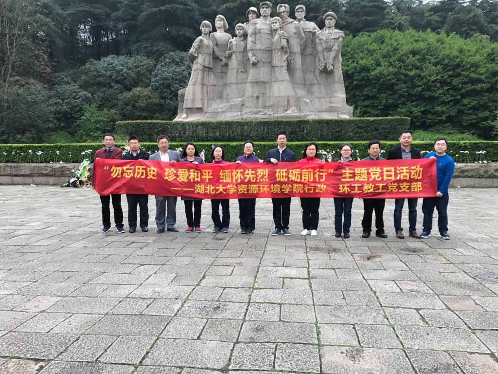 2017年4月8-9日,我院行政、环境工程教工党支部在学院党委副书记李明、常务副院长周建刚带领下,冒雨赴雨花台烈士陵园和侵华日军南京大屠杀遇难同胞纪念馆开展了“勿忘历史、珍爱和平、缅怀先烈、砥砺前行”的主题党日活动,表达了继往开来,为实现中华民族伟大复兴之中国梦而努力奋斗的决心。