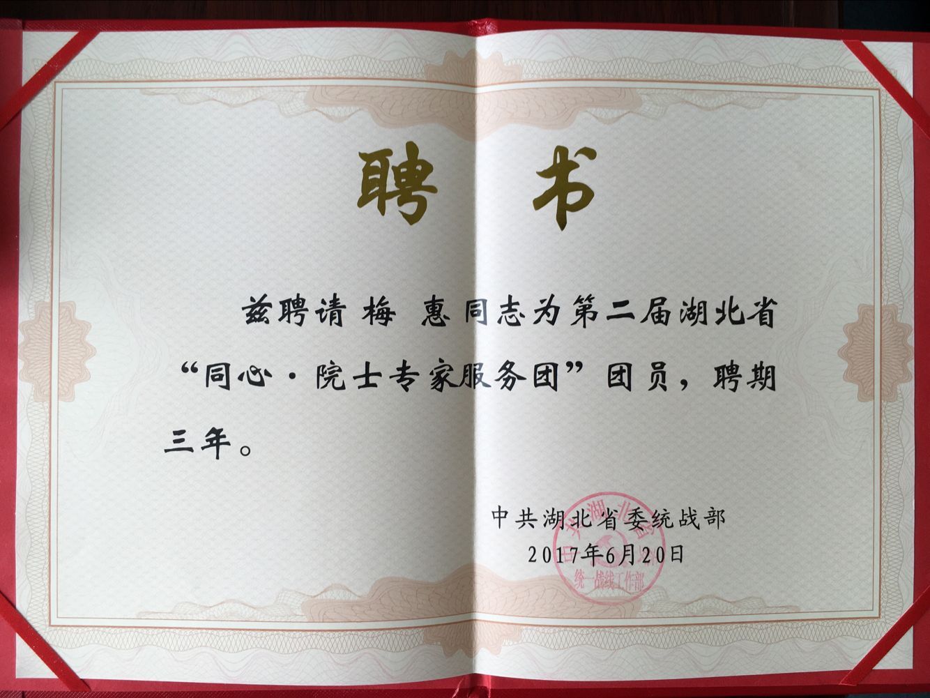 6月14日,中共湖北省委统战部下发《关于聘请第二届湖北省“同心·院士专家服务团”名誉团长、名誉副团长及团长、副团长、团员的通知》,我院李中强教授、梅惠副教授光荣入选。