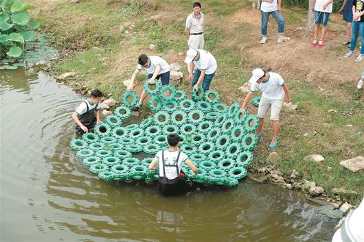 人工生物浮岛治水技术即把陆生喜水植物移植到塑料、泡沫等浮体上栽培,植物通过吸收水中的氮、磷等物质,降低水体富营养化程度,抑制藻类生长,从而达到净化水质的环保目的。在2015年三四月份,2138cn太阳集团城张劲、王敏两位博士,就曾赴菲律宾圣巴勃罗市对当地受污染湖泊进行生态修复,受到了当地居民的追捧。