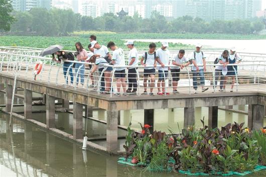 杨武湖介绍说,目前,沙湖环保志愿队的志愿工作主要有“清洁湖泊”“生物浮岛”“环保课堂”等,今年,他们还提出了“落叶堆肥”的构想,力图改善沙湖整体的生态环境、减轻人地矛盾。通过持续7年的监测,他们发现沙湖水质变好了不少。