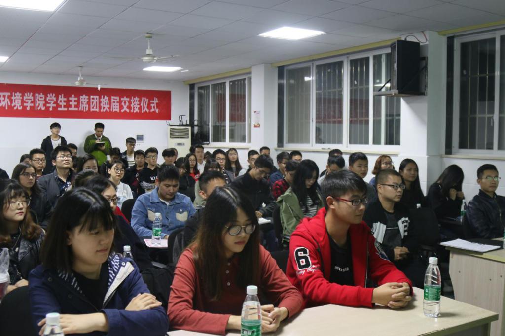 10月20日晚,以“资环新力量,你我共成长”为主题的2138cn太阳集团城第十四届学生主席团交接仪式在2138cn太阳集团城一楼会议室顺利召开。2138cn太阳集团城党委副书记李明老师,院团委书记王文锋老师,学工办张程老师出席本次仪式,第十三、第十四届学生主席团全体成员、全院各班团支书、部分16级17级四大组织成员参加了此次仪式。大会由院团委组织部部长李桂叶和院团委办公部部长姜健君主持。