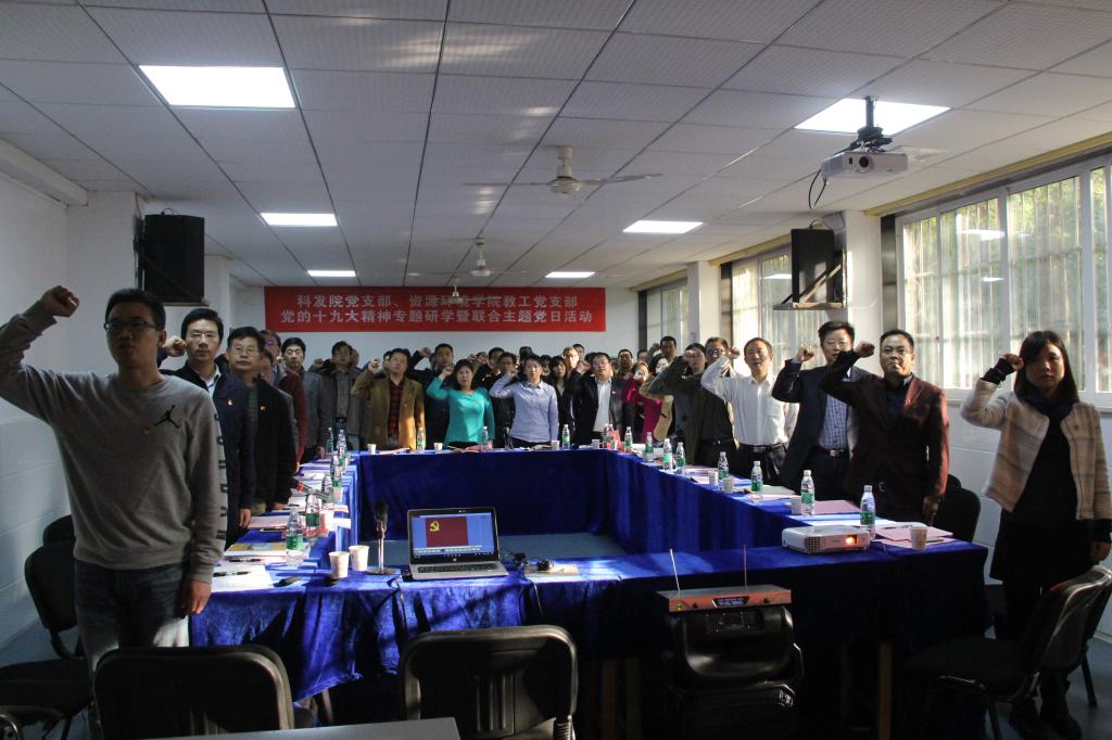 在“聚力本科教学审核评估”主题党日活动阶段,全体与会党员共唱国歌,面对党旗重温入党誓词。资环学院副院长李海波同志介绍了学院本科教学审核评估准备工作有关情况,指出学院正按照“深入理解、精确把握,组织学习、全面动员,责任到人、全面整改,营造氛围、文化上墙,加强沟通、妥善安排,团结一致、圆满成功”的48字方针有序推进本科教学审核评估的各项工作。科发院李剑勇同志介绍了科发院完成本科教学审核评估工作的有关情况。