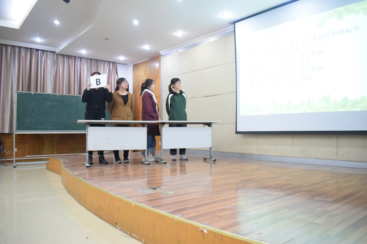 随着党的十九大的召开,环境问题成为全民热议的话题。此次环保知识竞赛,旨在呼吁大家学习环保知识,树立绿色环保的理念,为建设美丽家园献出自己的力量。17级环国专业的徐登寻同学在比赛结束后说到:“虽然比赛结束了,但环保的信念已传递给了更多的人,也相信在未来的环保路上,终会再现绿水青山。”(通讯员:袁毅 王书卉 邓紫薇 图片来源:李清韵 李纤雪)