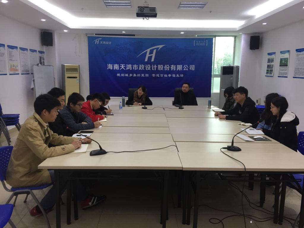 为深入了解“天鸿”实验班学员实习近况,加强对实习工作的指导。2月4日,院党委书记李兆华、副院长于婧带领有关负责老师前往海南天鸿市政设计股份有限公司(以下称天鸿公司)看望实习学生。