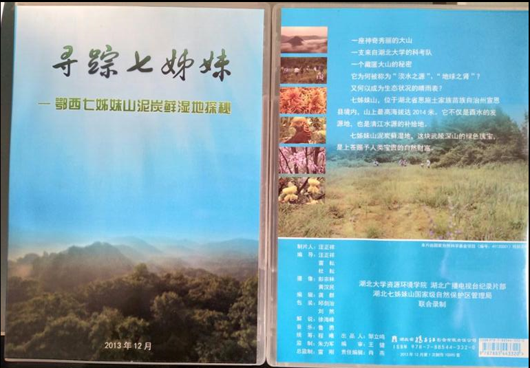 汪正祥教授受国家自然科学基金科普专项资助,带领科研团队以七姊妹山泥炭藓湿地为重点研究区域,以电视艺术为表现手段,通过长达2年的野外实地跟踪拍摄,辅以3D数字动画及远红外跟踪技术,用精彩的电视画面展现了鄂西泥炭藓湿地的分布、生物多样性、景观特征、干扰与演替、生态功能与保护以及泥炭藓的种类、结构及生活史,同时探讨了鄂西亚高山泥炭藓湿地与长江中下游水资源的保护及全球气候变化的关系,彰显泥炭藓湿地保护的重要意义与科学价值。这是国内第一部全面介绍泥炭藓湿地的专题片。从选题、内容、创作手法、表现形式上都具有创新性。是一部原创性的科普作品。该科普片先后在湖北广播电视台教育频道、恩施土家族苗族自治州电视台新闻综合频道、宣恩广播电视台综合频道多次播放,并由湖北省扬子江影音有限责任公司出版发行。此外,该团队还由中国林业出版社出版了专著《湖北七姊妹山国家级自然保护区泥炭藓湿地综合科学考察与研究》,该专著图文并茂,科学性与艺术性兼备,可读性强。汪正祥教授团队的科研工作,有力的推动了公众对鄂西泥炭藓湿地的科学认知与保护。