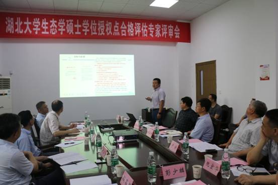 生态学一级学科硕士学位授权点负责人李中强教授做总体汇报。主要围绕人才培养目标和定位、学科建设、师资队伍、科研成果、人才培养、学术交流、社会声誉、存在不足和努力方向等方面,将学位授权点建设情况向各位专家进行了现场汇报。