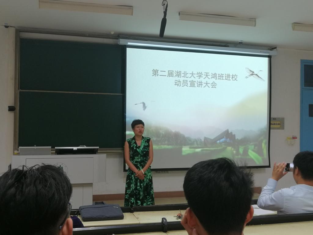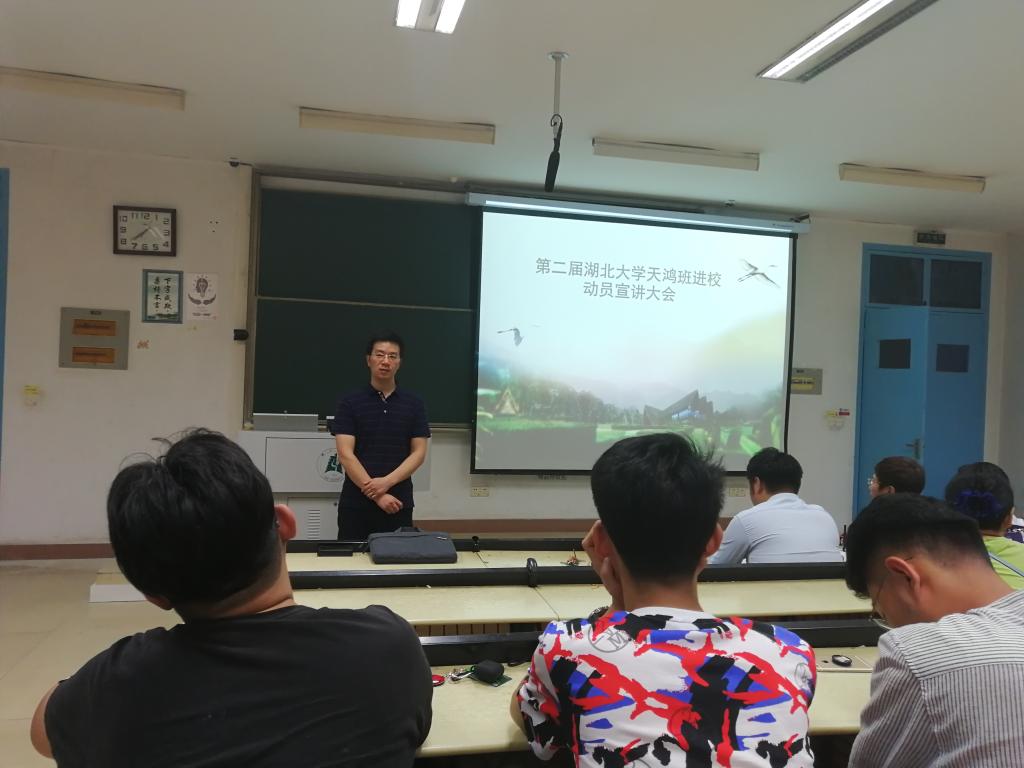 首先进行讲话的是李明书记,他简要的介绍了海南天鸿实验班的政策与待遇,然后让首批加入天鸿实验班的同学进行了自我介绍。接着,李明书记又播放了海南天鸿公司宣传片,让同学们对天鸿公司有了大致印象。