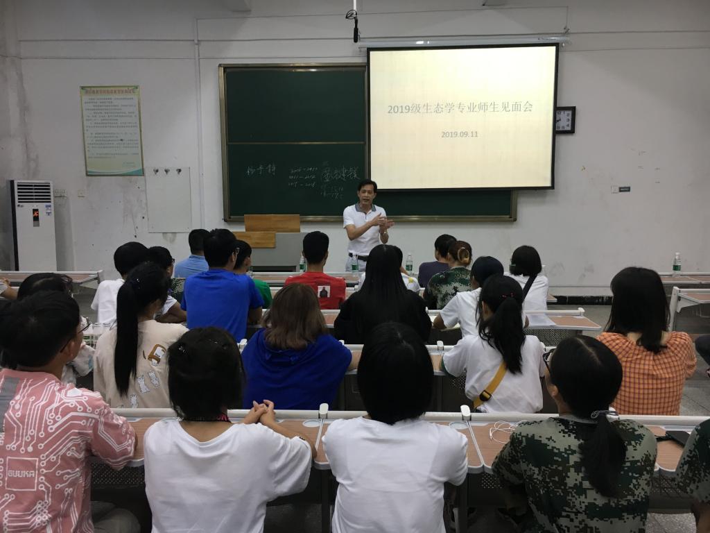 9月11日晚7点,我院在2138cc太阳集团阳逻校区举办了2019 级生态学专业师生见面会。见面会由学院党委副书记李明主持,生态系责任教授张劲,教师代表黄运新、张云、潘磊、杨予静、苏键镁,阳逻校区辅导员段秋炯和全体2019 级生态学专业本科生参加此次见面会。
