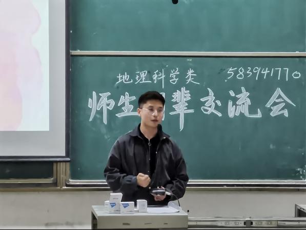 会上,2017级毕业生代表们分别从考研就业、科研入门、学科竞赛、学生活动、人际关系等角度与2020级学生分享大学之道。张鸣钊首先总结了地理科学(师范类)专业特点和知识体系,并结合自身经历讲述了如何在求职与考研之间寻找平衡点等问题。马超楠分享了自己在大学的学习与成长经验,她表示要尽快明确自己的兴趣方向,尽早进入新的学习模式,同时也要结合实际情况规划好自己的大学生涯。黄博健和闫华涛分别从专业学习、课余活动以及考研就业方面交流了自己的成长经历和学习体会,两位学长都鼓励2020级同学要多参与科创竞赛、志愿服务、学生活动等社会实践,从实践中收获更多成长。