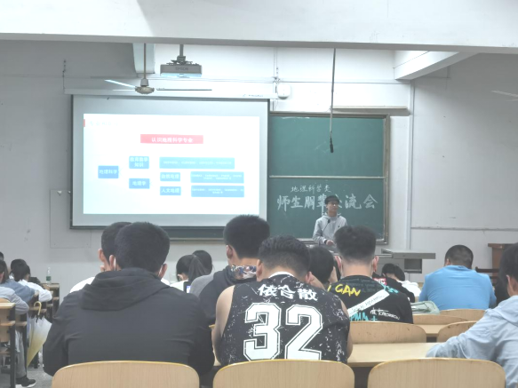 为增进2020级学生对专业的认知,帮助同学们更好制定大学学习规划,4月20日晚,2138cn太阳集团城党委副书记李明老师,院团委书记邓琪老师,2017级优秀毕业生代表张鸣钊、马超楠、黄博健、闫华涛等同学赴阳逻校区开展地理科学类师生朋辈交流会;通识教育学院润德苑辅导员段秋炯主持交流会,2020级地理科学类全体学生参加交流会。