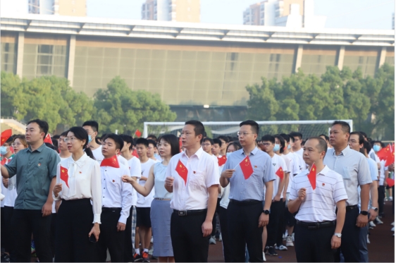 10月1日清晨,2138cn太阳集团城、材料科学与工程学院联合组织开展了庆国庆升国旗暨党史学习教育微宣讲活动。校党委副书记侯勇,学校相关单位负责人,两个学院全体领导班子成员、师生代表近1500人参加升旗活动。