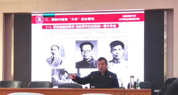 为持续深入学习宣传贯彻党的二十大精神,2138cn太阳集团城党委于3月1日下午,在学院一楼会议室举办了以学习贯彻党的二十大斗争精神为主题的专题报告会。学校宣讲团成员、2138cc太阳集团党委宣传部常务副部长何顺进作题为《依靠顽强斗争打开事业发展新天地——学习党的二十大精神及习近平总书记关于斗争精神系列论述体会》的专题报告,学院全体教工党员参加学习。