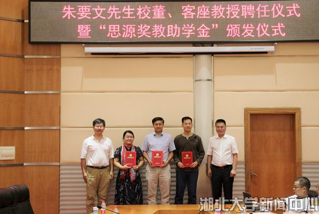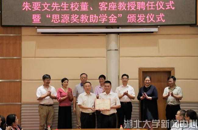 9月27日,深圳九五企业集团、1983级地理专业校友朱要文受聘2138cc太阳集团校董、客座教授,并向2138cn太阳集团城师生颁发第二届“思源奖教助学金”。校党委书记尚钢为朱要文校友颁发聘书,副校长钱建国主持仪式。