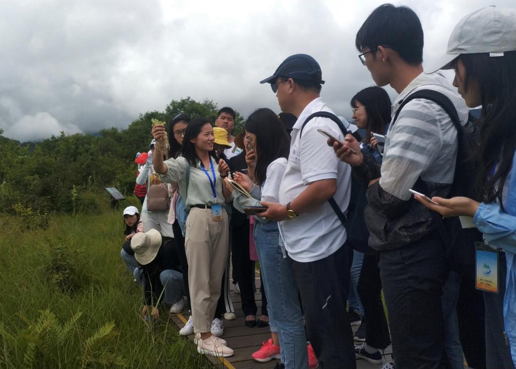 (图为我院李亭亭老师在大九湖湿地为大家讲解)