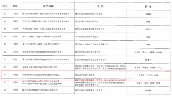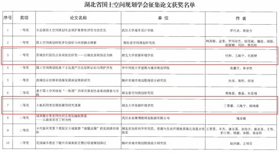 4月15日,湖北省国土空间规划学会公布了学会论文征集获奖名单,我院地理学、农业专业研究生在本次论文评选中荣获佳绩,付珅、丁葱慧、田清华等人表现优异,分别获得一等奖、二等奖、三等奖。