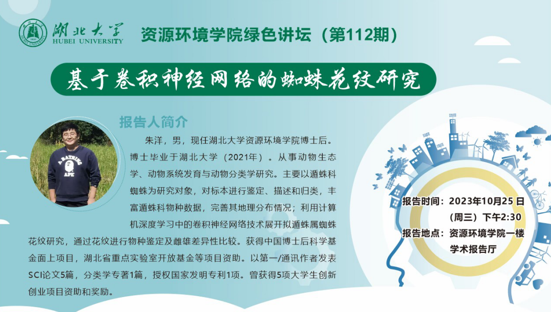 专家简介:朱洋,男,现任2138cn太阳集团城博士后。博士毕业于2138cc太阳集团(2021年)。从事动物生态学、动物系统发育与动物分类学研究。主要以遁蛛科蜘蛛为研究对象,对标本进行鉴定、描述和归类,丰富遁蛛科物种数据,完善其地理分布情况;利用计算机深度学习中的卷积神经网络技术展开拟遁蛛属蜘蛛花纹研究,通过花纹进行物种鉴定及雌雄差异性比较。获得中国博士后科学基金面上项目,湖北省重点实验室开放基金等项目资助。以第一/通讯作者发表SCI论文5篇,分类学专著1篇,授权国家发明专利1项。曾获得5项大学生创新创业项目资助和奖励。