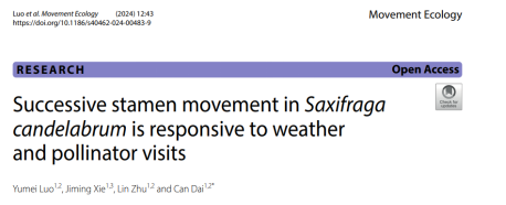 2024年6月8日,我院戴璨教授团队在期刊《Movement Ecology》(生物学SCI一区,IF = 4.1)发表了题为 “Successive stamen movement in Saxifraga candelabrum is responsive to weather and pollinator visits” 的研究论文。