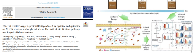 我院宋慧婷教授团队于9月20日在国际知名期刊《Water Research》(中科院1区TOP IF=11.4)上发表题为 “Effect of reactive oxygen species (ROS) produced by pyridine and quinoline on NH4+-N removal under phenol stress: The shift of nitrification pathway and its potential mechanisms” 的学术论文。