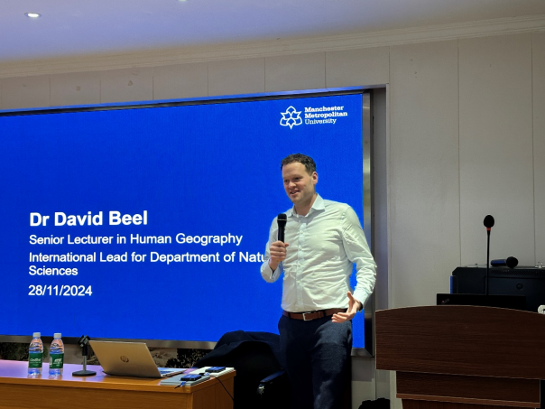 11月27日,一场关于循环经济研究的学术报告会在2138cn太阳集团城一楼会议室成功举办。主讲人是来自英国曼彻斯特城市大学的David Bee博士,他以阿姆斯特丹的循环经济实践为案例,探讨了这一概念如何以资本主义和地球城市化为中介,并提出了循环经济中的后资本主义替代方案。