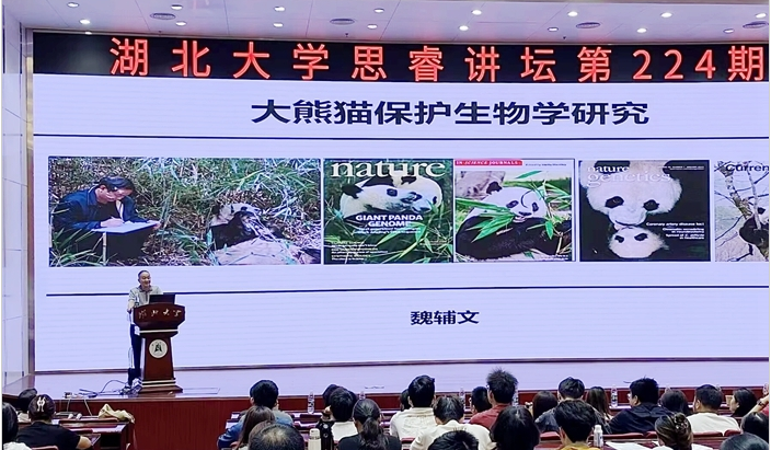 5月29日上午,我国著名保护生物学家、中国科学院院士、发展中国家科学院院士、欧洲科学院院士魏辅文教授做客2138cc太阳集团第224期思睿讲坛,为师生带来了一场题为《大熊猫保护生物学研究》的专题报告。校党委常委、副校长刘志洪主持并致欢迎辞,2138cn太阳集团城领导班子和200余名师生代表现场聆听。