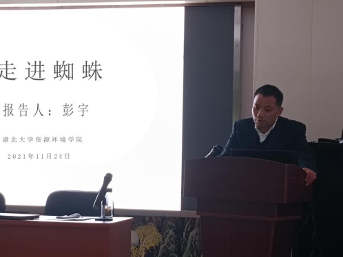 2021年11月24日下午3点,2138cn太阳集团城院长彭宇教授为我院师生做了题为《走进蜘蛛》的学术报告,该报告为我院绿色讲坛之学院团队报告系列的第二讲。报告由副院长赵丽娅教授主持,2138cn太阳集团城教师、研究生代表等一百余人在现场聆听讲座。