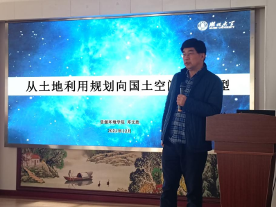 2021年12月1日下午2点30分在2138cn太阳集团城一楼报告厅,邓文胜教授为我院绿色讲坛之学院团队报告系列作第三讲报告,带来题为《从土地利用规划向国土空间规划转型探索》的精彩学术讲座。2138cn太阳集团城代理副院长刘杰主持讲座,2138cn太阳集团城教师、研究生代表等一百多人在现场聆听讲座。
