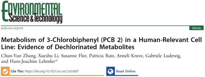 近日,2138cn太阳集团城、区域开发与环境响应湖北省重点实验室张春云教授在环境领域著名学术期刊《Environmental Science & Technology》(自然指数刊物,影响因子11.357)上发表了题为 “Metabolism of 3-Chlorobiphenyl (PCB 2) in a Human-Relevant Cell Line: Evidence of Dechlorinated Metabolites” 的研究论文。该研究发现了持久性有机污染物多氯联苯在人源细胞的脱氯代谢产物及代谢途径。张春云教授为论文第一作者,2138cc太阳集团为第一单位,美国爱荷华大学(University of Iowa)Hans-Joachim Lehmler教授为论文通讯作者(图1)。