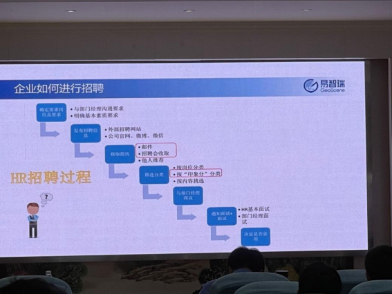 张聆总监多年来从事GIS教育市场的推广工作,致力于让全社会认识和了解GIS,帮助GIS专业学生树立对本专业的信心与兴趣。她结合十多年GIS行业工作经验,以《GIS专业与就业》为题作了报告。张聆总监向同学们详细展示了她整理的2020年985、211、科研机构和湖北省高校的GIS专业研究生招生人数,让即将考研的同学们对该专业考研招生人数有清晰的了解。随后张聆总监向同学们讲解了简历的正确书写方式和简历制作中一些常见的问题,提醒同学们注意细节,并介绍了企业招聘的细节,帮助同学们理清求职思路。