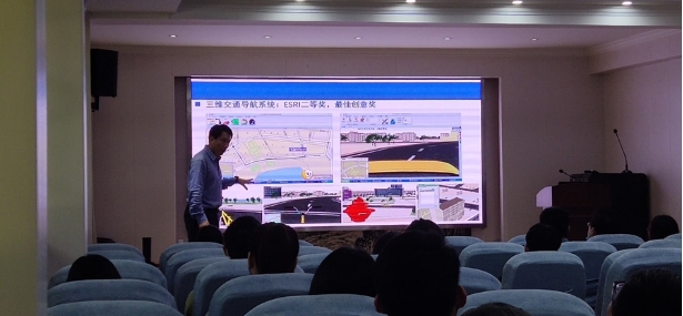 牟乃夏教授以“GIS专业与就业”为题向同学们介绍了GIS技能大赛的相关事项、GIS的学习方法以及该专业今后的就业方向。他详细地介绍了全国大学生GIS技能大赛的流程、试题和要求等,强调“文档第一、细节第一”,讲述了文档地书写格式以及内容要求;介绍全国大学生GIS应用技能大赛的能力要求——空间数据的采集编辑与集成处理能力、空间分析技术的应用与系统设计能力等;为同学们展示了他本人所指导的团队的获奖成果,让同学们对学科竞赛有了更清晰的认识和理解。牟乃夏教授同时勉励同学们,要找到自己学习的目标,还要有宽阔的视野,要关注并了解当前行业的未来发展方向,让自己不断获得成长,适应新的社会要求。