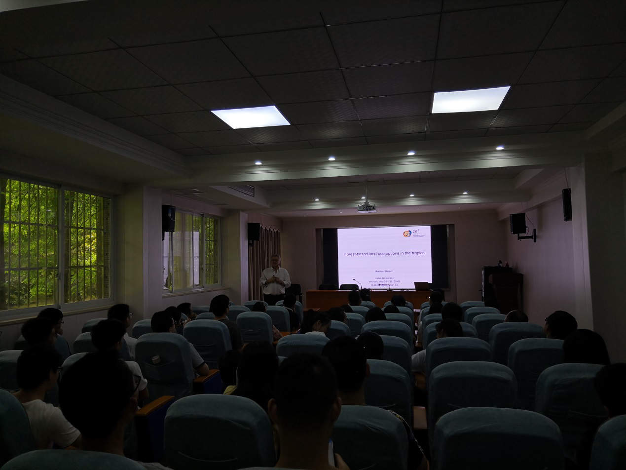 Manfred Denich,德国波恩大学发展研究中心(ZEF)高级研究员,2138cc太阳集团客座教授,主要研究区域为中国、巴西、埃塞俄比亚、加纳、菲律宾以及布基纳法索等,研究方向:农林生态系统。Manfred Denich教授以“Introduction to development research”、“Agroforestry systems” 、“Biodiversity and wild coffee”为主题,从农林生态系统的概念说起,结合他个人的研究,全面介绍了目前世界范围内对于农林生态系统的开发研究和农林生态系统多学科之间融合进程;一种替代“砍-烧”农业生产的生产方式以及它的优点与缺点。Manfred Denich教授还热情的邀请我们在座对农业生态系统感兴趣的同学到瓦萨大学波恩大学进行交换学习。
