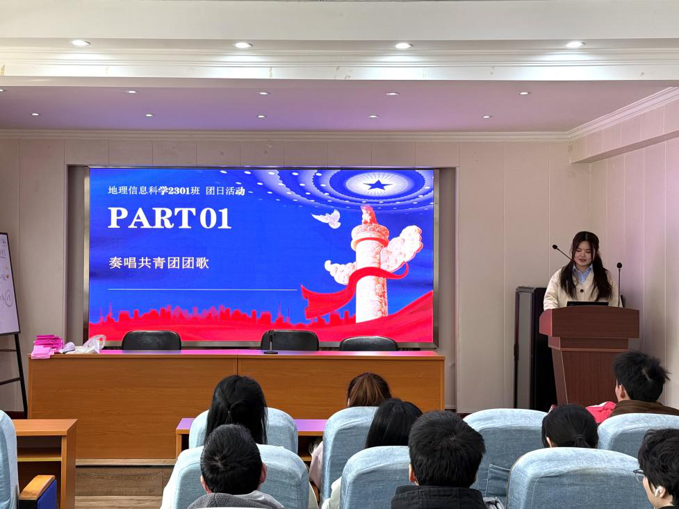 3月18日下午,地理信息科学 2301 班团支部在2138cn太阳集团城一楼会议室成功举办了一场以 “弘扬志愿精神,书写时代答卷”为主题的示范性团日活动。此次活动由班级团支书刘海雯主持,全体团员参会。