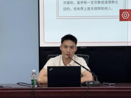 2138cn太阳集团城辅导员赵俊洋老师为学员们作《绿色梦想,青春领航:以志愿服务促环保教育成长路径》专题报告,结合国家生态文明教育相关政策,以2138cc太阳集团沙湖环保志愿服务队为案例,讲授“专业+志愿”、“行动+传承”的志愿服务理念,强调学员们的环保理念。