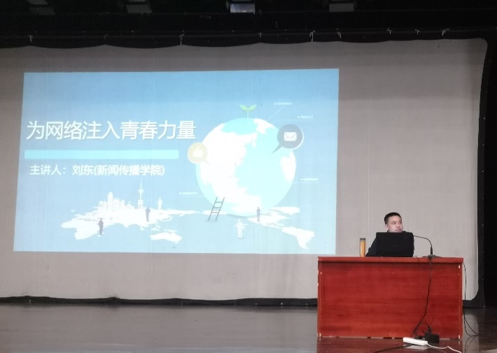 第一节课的主题为《大学生在网络舆情中的理性存在》。主讲人刘东老师从网络是舆论斗争的新战场、青年是网络应用的主力军、网络需要注入青春新能量三个角度向同学们讲解了青年人在网络中的重要作用和影响。刘老师还着重讲到了新时代大学生应该怎样通过理性用网、广泛参与社会实践活动、坚持自律与他律相结合为网络空间注入正能量。在论述过程中,刘老师例举了大量实例,让同学们更深刻地感受到了网络对当今社会的巨大影响。