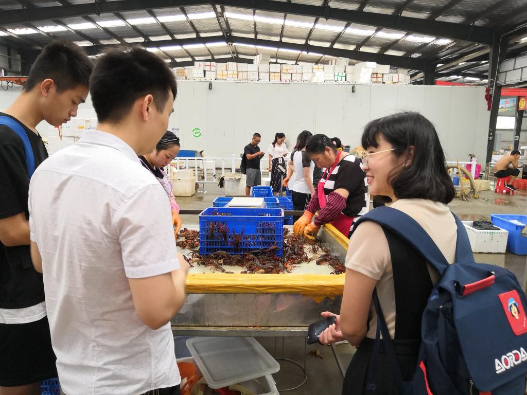 接着研究团队来到了中国小龙虾交易中心,在工作人员的指引下观看了小龙虾电商销售的宣传片,并在交易市场内的配送中心,深入了解小龙虾收购、分类、打包、配送的动态流程。据工作人员介绍,潜网集团开发的“虾谷360”服务平台,可以实时更新交易信息,促进交易流程透明化专业化。小龙虾正在形成相对成熟的供应链系统,产业体系日益完善,将对潜江市经济发展注入新的动力。