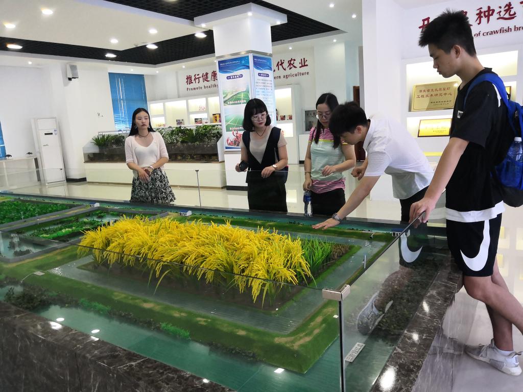 首先,在潜江市水产局张玮的带领下,小龙虾团队来到了湖北莱克集团良种选育繁育中心,通过观看纪录片、浏览技术展板、参观养殖模式沙盘等方式,深入了解潜江龙虾选育的过程,受益匪浅。工作人员谈到“打造四水共作新模式,引领现代农业大发展,将是生态养殖的新目标”。