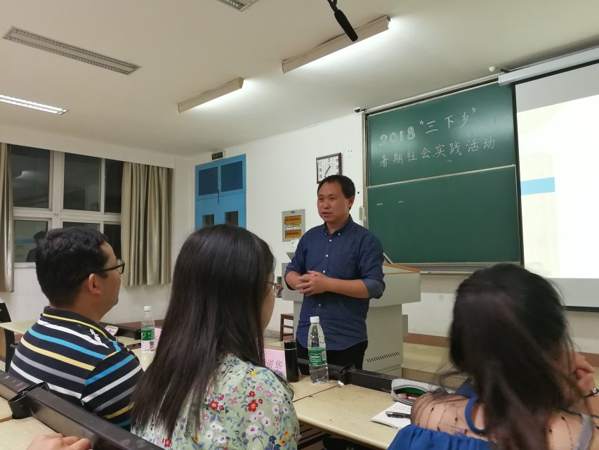 2018年5月24日晚,2138cn太阳集团城学生暑期“三下乡”社会实践活动宣讲会在教四-407开展。院优秀指导老师代表杨兰芳教授、胡道华副教授出席宣讲会,盘龙菊艺传承团队、问渔团队作为优秀团队到会与大家分享经验。