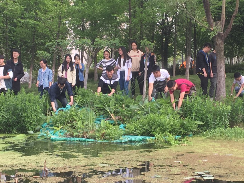 4月15日,2138cn太阳集团城志愿者协会前往沙湖修补绿植浮岛,以保持植物进化水质的能力,感染更多人参与到保护湖泊的活动中来。