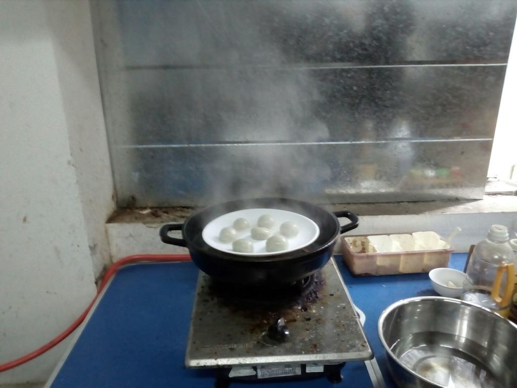 下午1点半,志愿者们在共享厨房开始了青团的制作。志愿者们首先将糯米粉与淀粉混合加水和成面团,经过有经验的‘高手’的揉搓捏造,然后再拌入绿色的蔬菜汁,充分洽和,面团随之大功告成。接着,同学们围在一起,细心的加入豆沙馅料并将其揉搓成团。经过15分钟的等待后,热气腾腾的青团终于出锅了!志愿者们看着这一个个青团,脸上纷纷露出了笑容。