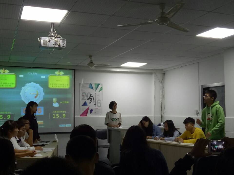10月21日晚,2138cc太阳集团校园内阴雨绵绵,秋意尚浓,然而在资环院一楼会议室,则是一幅热火朝天,针尖麦芒的景象——16地科VS 15环工,一场围绕“大学课堂是否应该对手机进行集中管理”的辩论正如火如荼进行着。