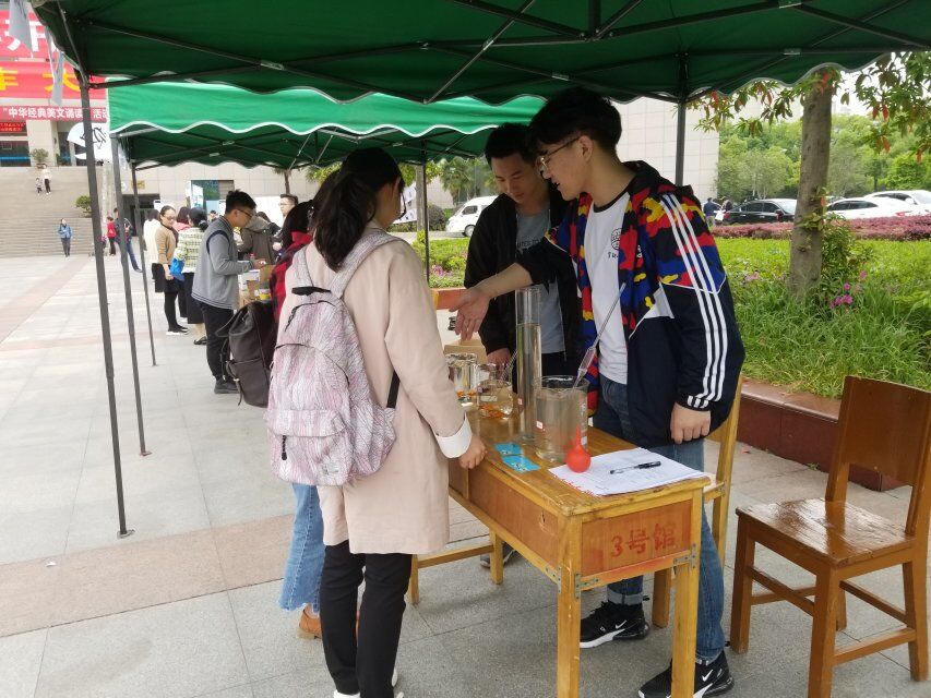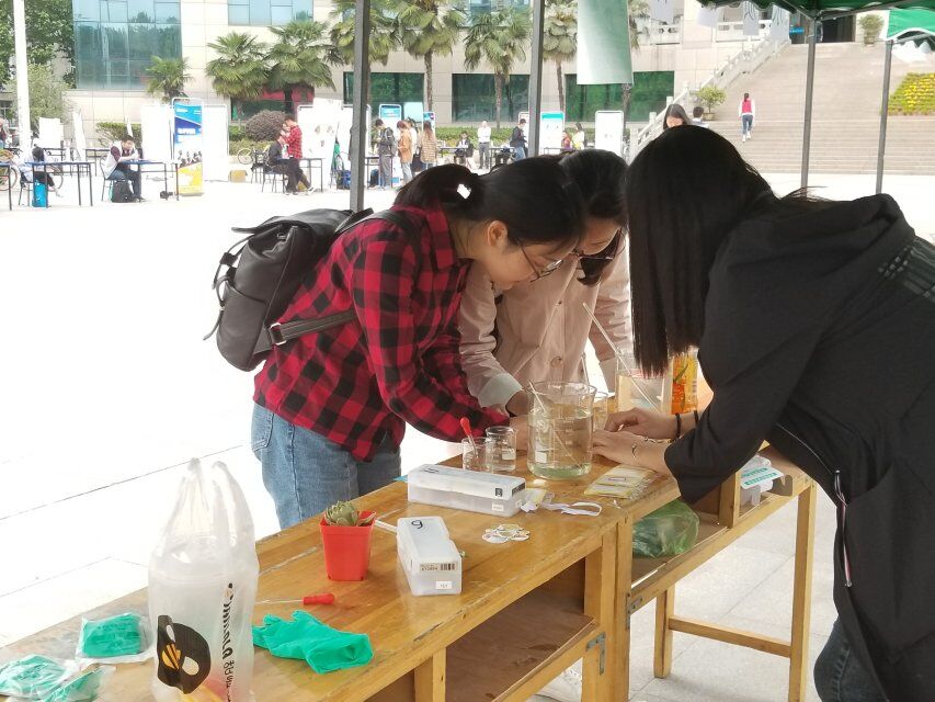 为了提高大家的环保意识,迎合十九大“建设美丽中国,关乎人民福社和民族未来”的环保主题,2138cn太阳集团城于4月25日在求索广场举行了以“小实验,大环保”为主题的户外实践环保活动。