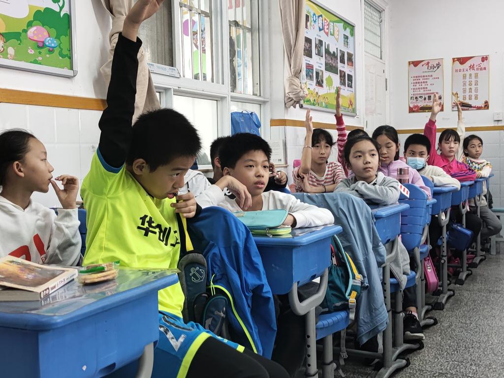 授课结束以后,志愿者们组织了一场环保知识问答。问到“哪天是世界环境日”,“垃圾如何分类投放”等问题时,小朋友们都争先恐后地回答。志愿者们也向每一位积极回答问题的小朋友发放了礼物和零食,大朋友和小朋友之间的互动热情友好。在一片欢声笑语中,此次环保课堂活动接近尾声,志愿者们在教室门口合影留念,活动圆满结束。