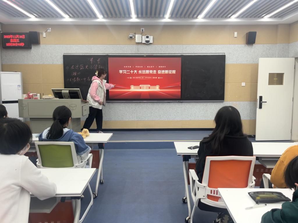 为深入学习宣传贯彻党的二十大精神,充分发扬“党有号召,团有行动”的光荣传统,引领广大团员青年坚定不移听党话、跟党走,用奋斗擦亮青春底色,以实际行动践行使命担当,奋力谱写新发展阶段共青团工作高质量发展新篇章,我院21个本科生、研究生团支部于11月份开展了“学习二十大,永远跟党走,奋进新征程”主题团日活动,现将团日活动总结如下。